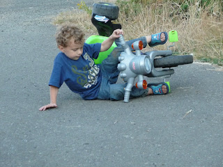 Wyatt and his cousin, Ryelie, riding bikes outside tonight.